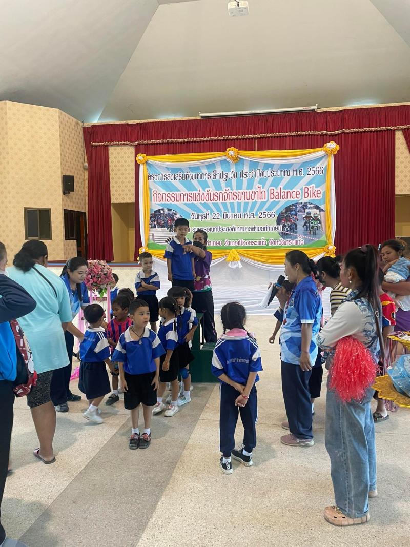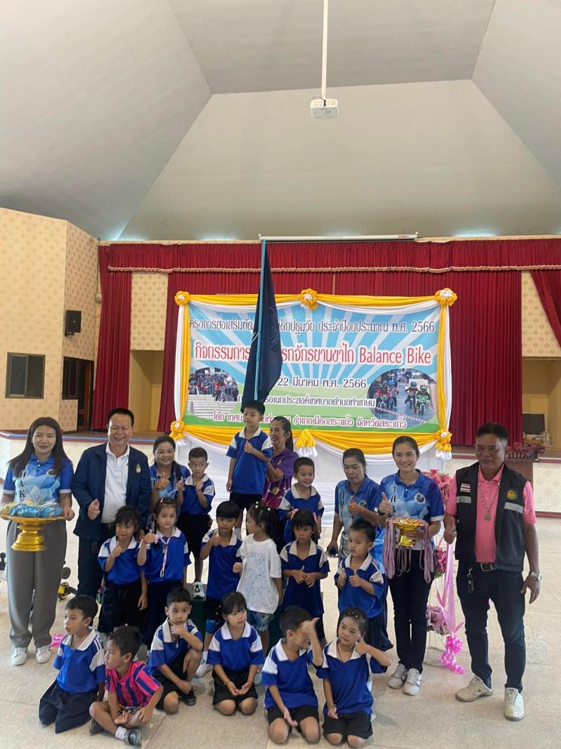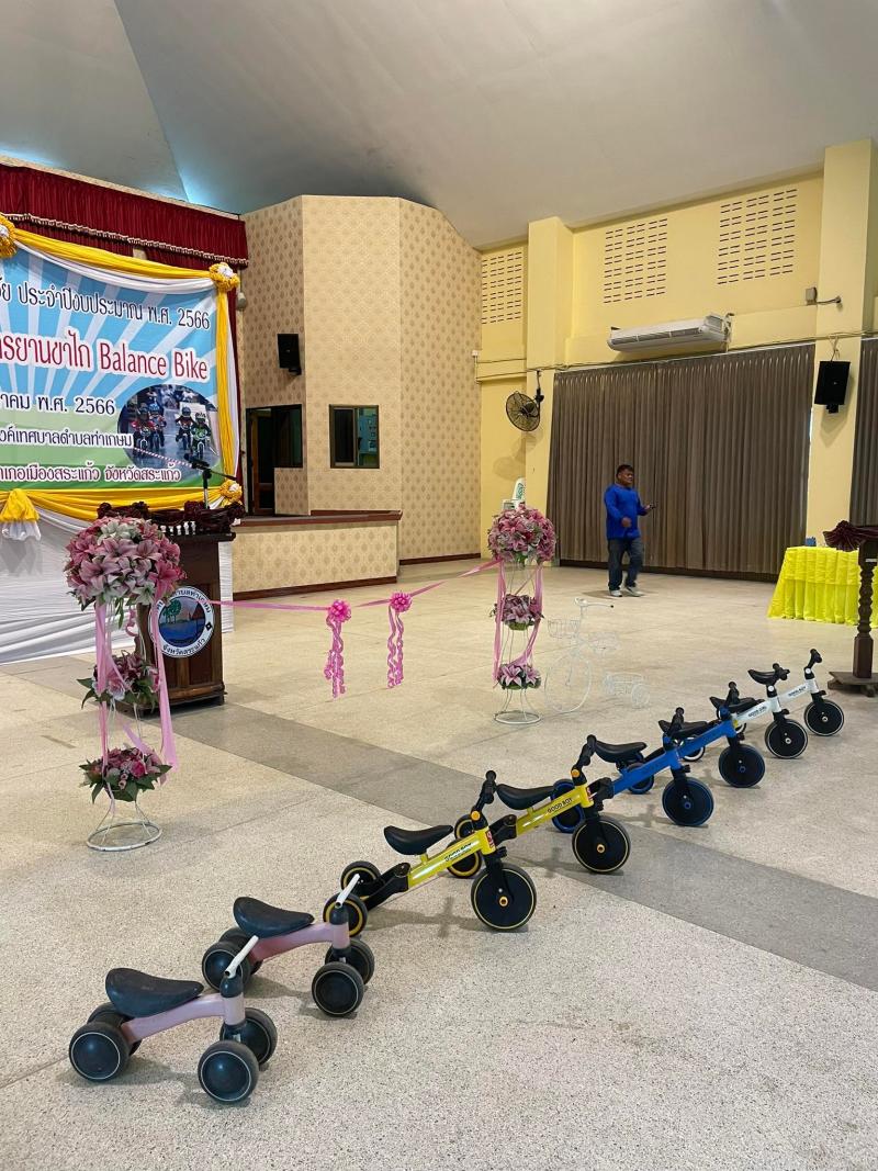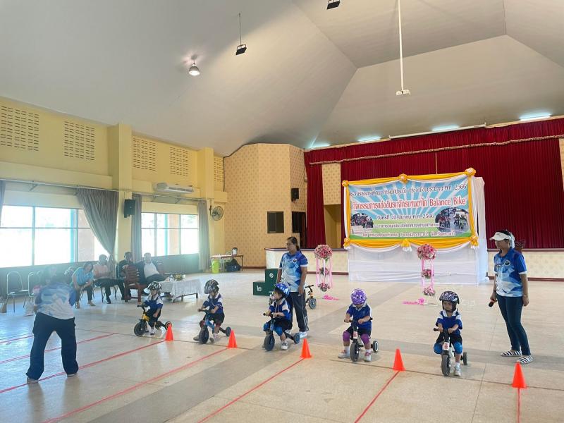 รายละเอียด : โครงการส่งเสริมพัฒนาการเด็กปฐมวัย ประจำปีงบประมาณ พ.ศ. 2566 “กิจกรรมการแข่งรถจักรยานขาไถ Balance Bike” โดยมีวัตถุประสงค์ ที่กระทรวงมหาดไทย มีนโยบายในการส่งเสริมและสนับสนุนให้ศูนย์พัฒนาเด็กเล็ก สังกัดองค์กรปกครองส่วนท้องถิ่น พัฒนาเด็กปฐมวัยให้มีการพัฒนาทางด้านร่างกายที่แข็งแรง และจิตใจ อารมณ์ มีความเบิกบาน มีความกล้าหาญ มีวินัย มีน้ำใจนักกีฬา รู้จักแพ้ รู้จักชนะ เคารพกฏ ระเบียบ กติกา ด้วยกิจกรรมจักรยานขาไถ Balance Bike เพราะช่วยส่งเสริมพัฒนาการของเด็กได้ทุกด้าน ทั้งการพัฒนากล้ามเนื้อมัดเล็กมัดใหญ่ให้แข็งแรง เป็นการฝึกการทรงตัว รวมทั้งช่วยฝึกสายตา การแยกแยะสี การประเมินระยะทาง การใช้มือและแขนเพื่อบังคับทิศทาง และการใช้กล้ามเนื้อขาที่ออกแรงเดิน เพื่อให้เด็กปฐมวัยเติบโตเป็นผู้ใหญ่ที่ดีต่อไป