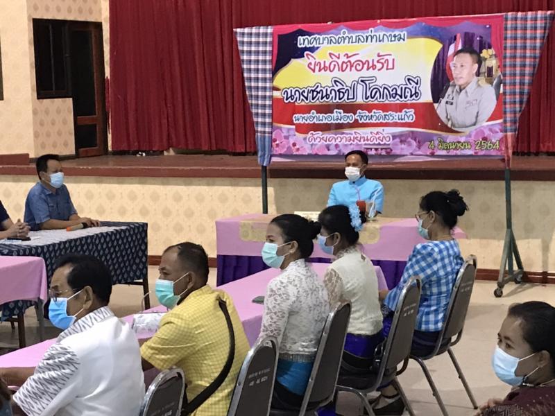 รายละเอียด : วันศุกร์ที่ 4 มิถุนายน 2564 ท่านชนาธิป โคกมณี นายอำเภอเมืองสระแก้ว ได้มาตรวจเยี่ยมและมอบนโยบายในการบริหารงาน บริการประชาชน แก่ คณะผู้บริหาร สมาชิก ผู้นำชุมชน ข้าราชการและพนักงานเทศบาลตำบลท่าเกษม ณ อาคารเอนกประสงค์เทศบาลตำบลท่าเกษม