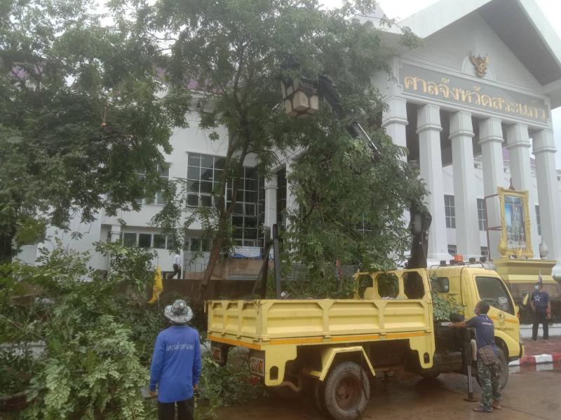 รายละเอียด : เมื่อวันที่ 6 พฤษภาคม 2564 เกิดพายุฝนตกหนักทำให้ต้นไม้ใหญ่ล้มภายในสถานที่ราชการ ศาลากลางจังหวัดสระแก้ว ท่านวิเชียร สุคนธประทีป นายกเทศมนตรีตำบลท่าเกษม สั่งการให้ ด.ต.ฐากฤชภ์ ทองเกิด เลขานุการนายกเทศมนตรี นำกำลังพลพนักงานเทศบาลตำบลท่าเกษม ช่วยเหลืออย่างเร่งด่วนเพื่อให้การสัญจรไปมาได้สะดวก