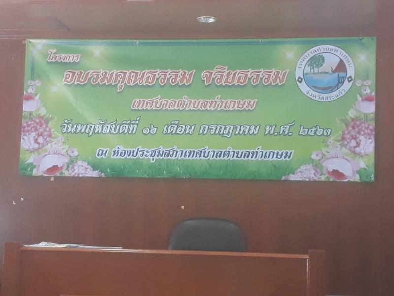 รายละเอียด : โครงการ "อบรมคุณธรรม จริยธรรม เทศบาลตำบลท่าเกษม" ประจำปีงบประมาณ 2563
