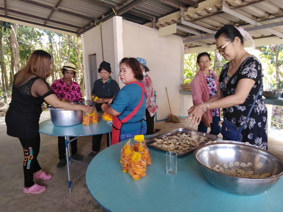 โครงการฝึกอาชีพชุมชน 1,2,3,5 ร่วมกับ กศน.ตำบลท่าเกษม ทำขนมฉาบมัน กล้วยหักมุก และลูกชุบ