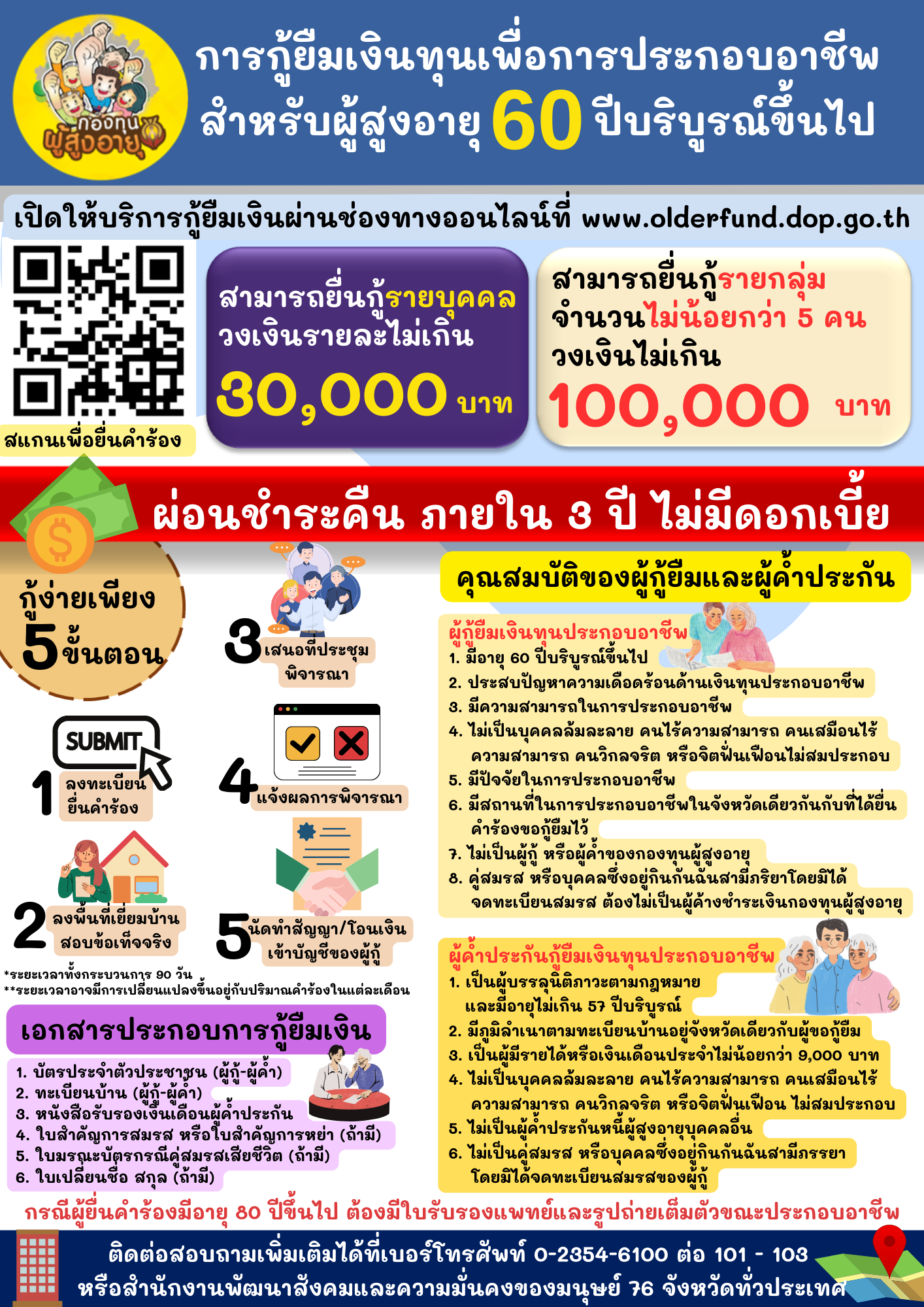 ข่าวประชาสัมพันธ์ การกู้ยืมเงินทุนเพื่อการประกอบอาชีพ สำหรับผู้สูงอายุ [3 กรกฎาคม 2566]