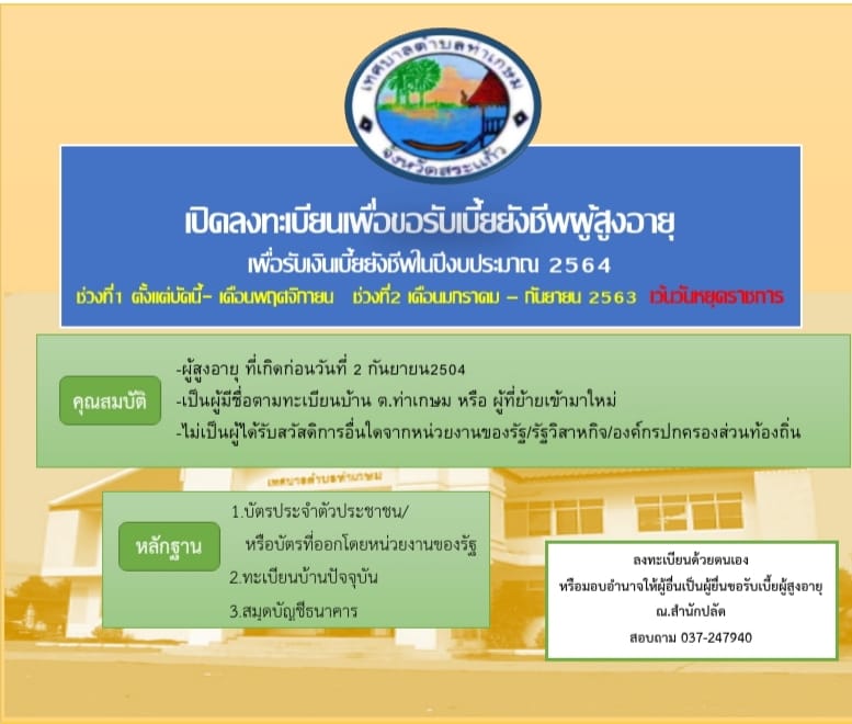 เปิดลงทะเบียนเพื่อขอรับเบี้ยยังชีพผู้สูงอายุประจำปีงบประมาณ 2564