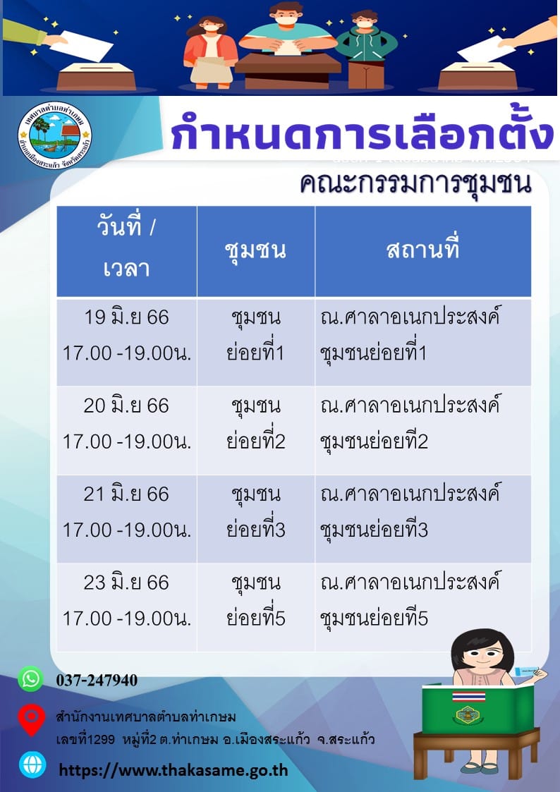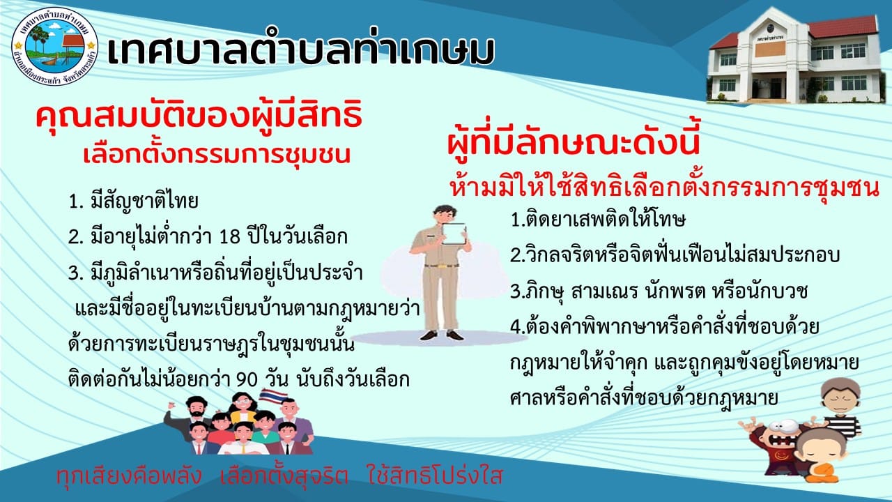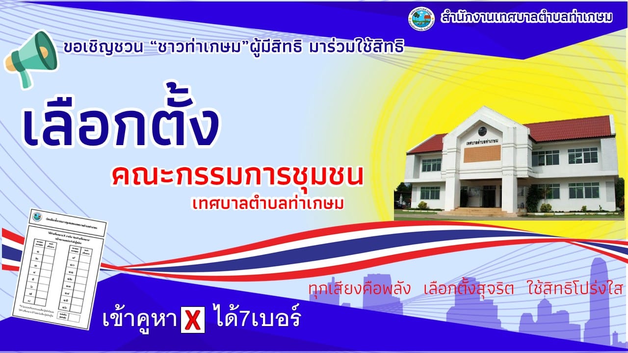 ขอเชิญชวน ชาวท่าเกษม พร้อมใจ ไปเลือกตั้ง ใช้สิทธิ์ เลือกตั้งคณะกรรมการชุมชน