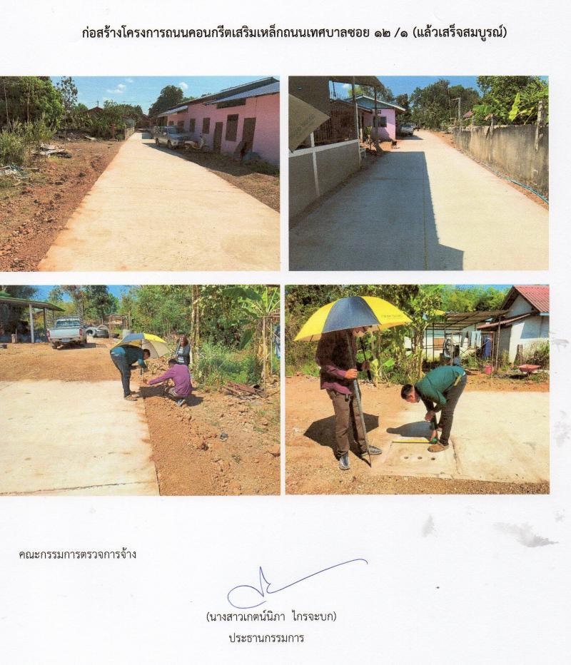บริหารสัญญาโครงการก่อสร้างถนนคอนกรีตเสริมเหล็กถนนเทศบาล ซอย 12/1