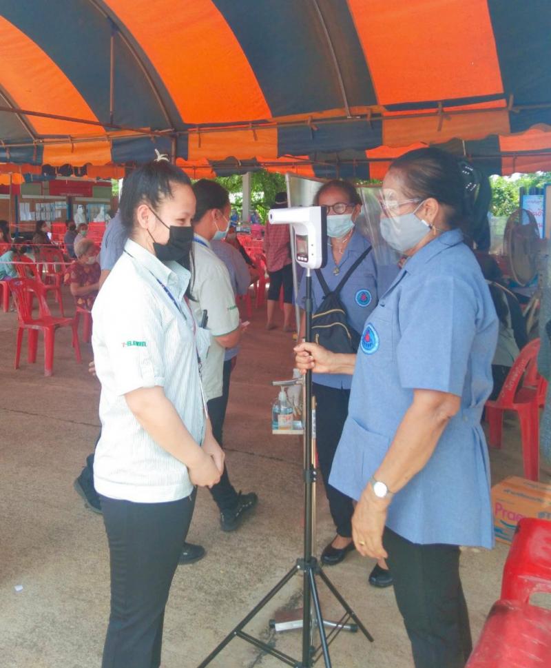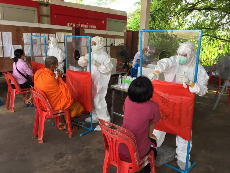 รายละเอียด : วันอังคารที่ 18 พฤษภาคม 2564 เทศบาลตำบลท่าเกษม ร่วมกับ เครือข่ายบริการสุขภาพอำเภอเมืองสระแก้ว ออกหน่วยบริการลงพื้นที่ดำเนินการคัดกรองค้นหาผู้ติดเชื้อไวรัส โคโรนา 2019 (COVID-19) ในเชิงรุก ณ สำนักงานเทศบาลตำบลท่เกษม โดยมีท่านวิเชียร สุคนธประทีป นายกเทศมนตรีตำบลท่าเกษม บริหารจัดการสถานที่และประชาสัมพันธ์เชิญชวนประชาชนเข้าร่วมกิจกรรมทั้งหมด 451 ราย ทั้งนี้ เพื่อเป็นการป้องกันและควบคุมโรคโควิด 19 ในเขตเทศบาลตำบลท่าเกษม ซึ่งก็ได้รับความร่วมมือเป็นอย่างดีจากประชาชน ชุมชนเทศบาลตำบลท่าเกษมเป็นอย่างดี