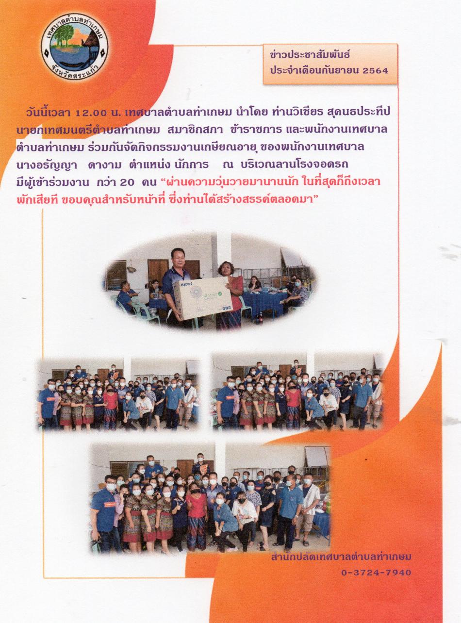 กิจกรรมเกษียณอายุพนักงานเทศบาลตำบลท่าเกษม [30 กันยายน 2564]