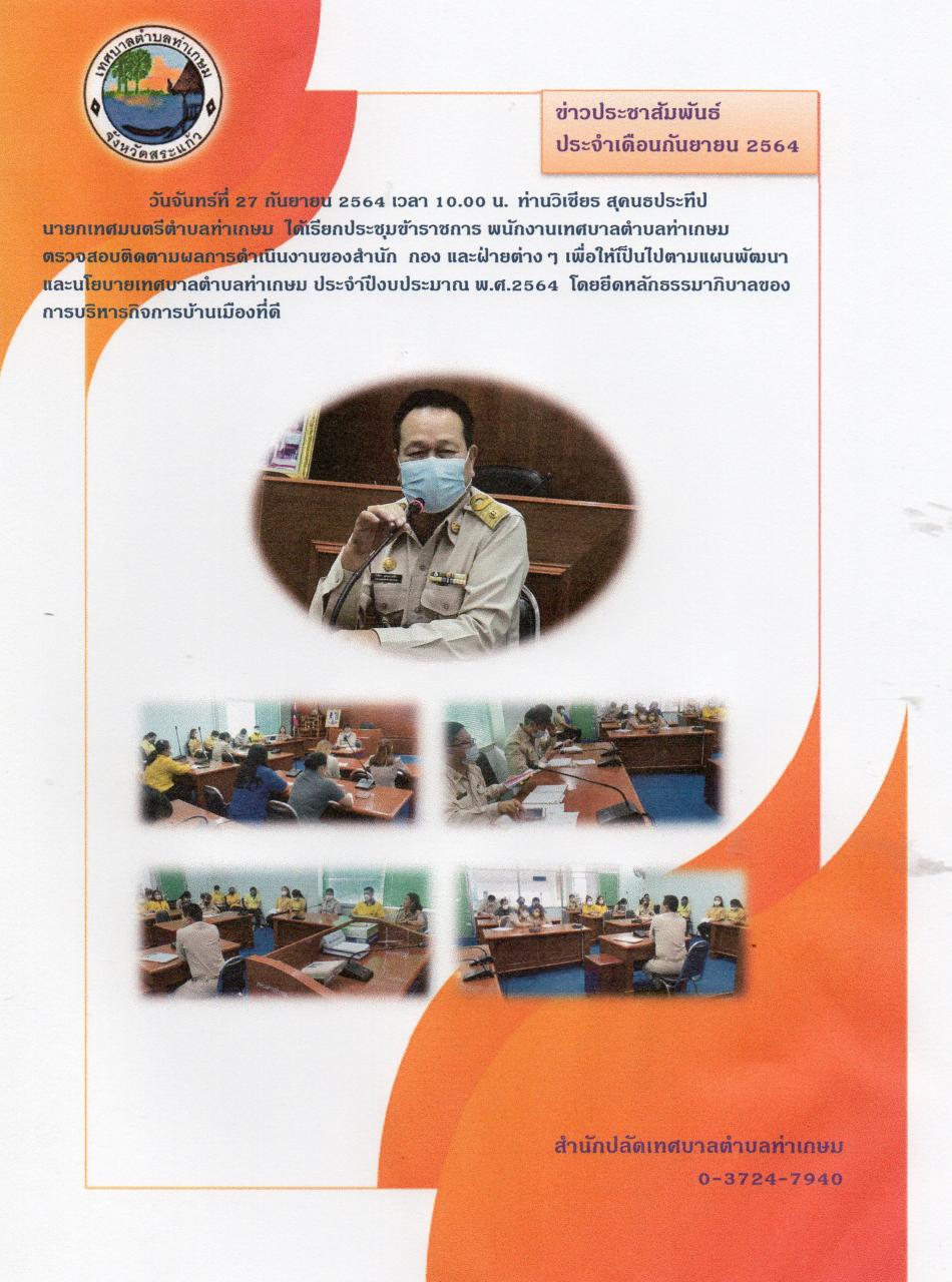 ประชุมข้าราชการ พนักงานเทศบาลตำบลท่าเกษม ประจำเดือนกันยายน 2564 [28 กันยายน 2564]